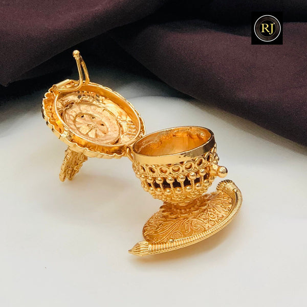 gold kumkum box, ganesha kumkum holder, sindoor box gold plated, pooja accessories india, ganesh pooja items, traditional kumkum dabba, decorative pooja box, indian return gift ideas, wedding return gift pooja item, hindu pooja essentials, ganpati decor item, small pooja container, festive gift item india